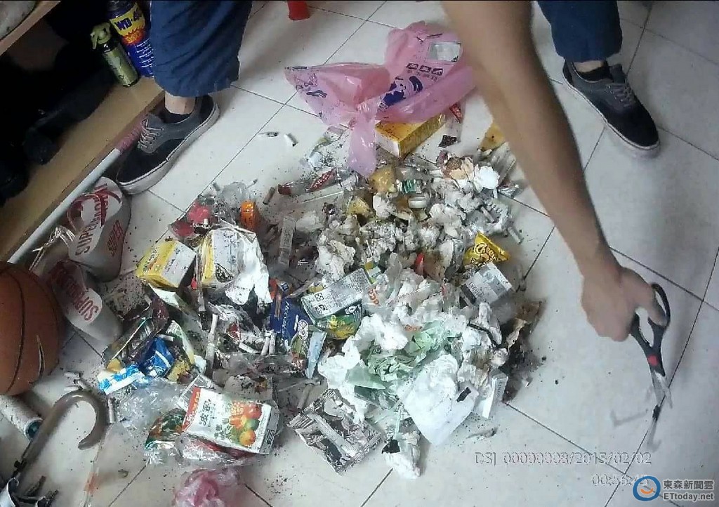▲許姓逆孫啃老水要錢吸毒,不給就和阿爭吵甚至砸毀傢俱,最後高82歲阿公不再容忍報警抓人,警方仔留在其家中垃圾中搜出安毒殘渣送法辦。(圖/記者孫曜樟翻攝)