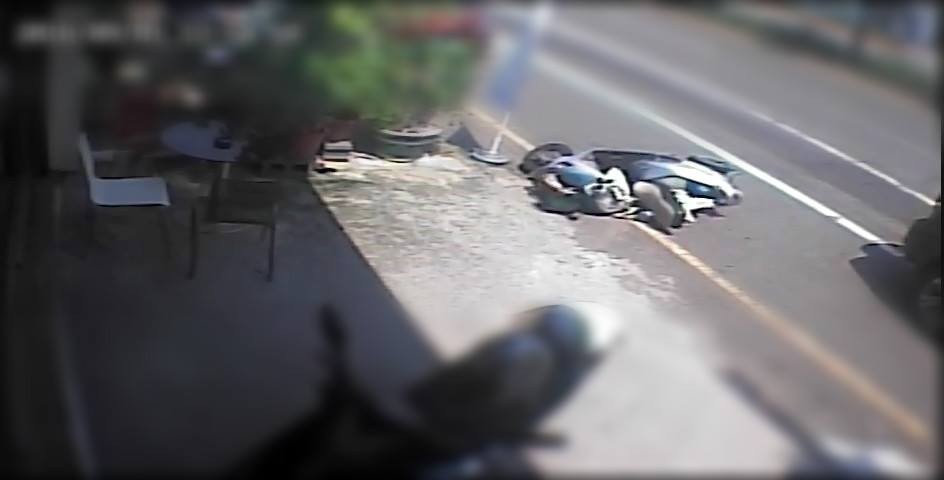 嘉義市長榮派出所日前接獲民眾報案,指稱停放在自家店門口的機車遭撞倒地,肇事車輛已逃離現場!警員經調閱事故發生地附近監視畫面過濾,發現該部機車在無人、車經過的狀況下振動後倒地,當事人及店家在場看到這一幕畫面感覺心裡「毛毛的」,感覺好像靈界「好兄弟」在惡作劇!