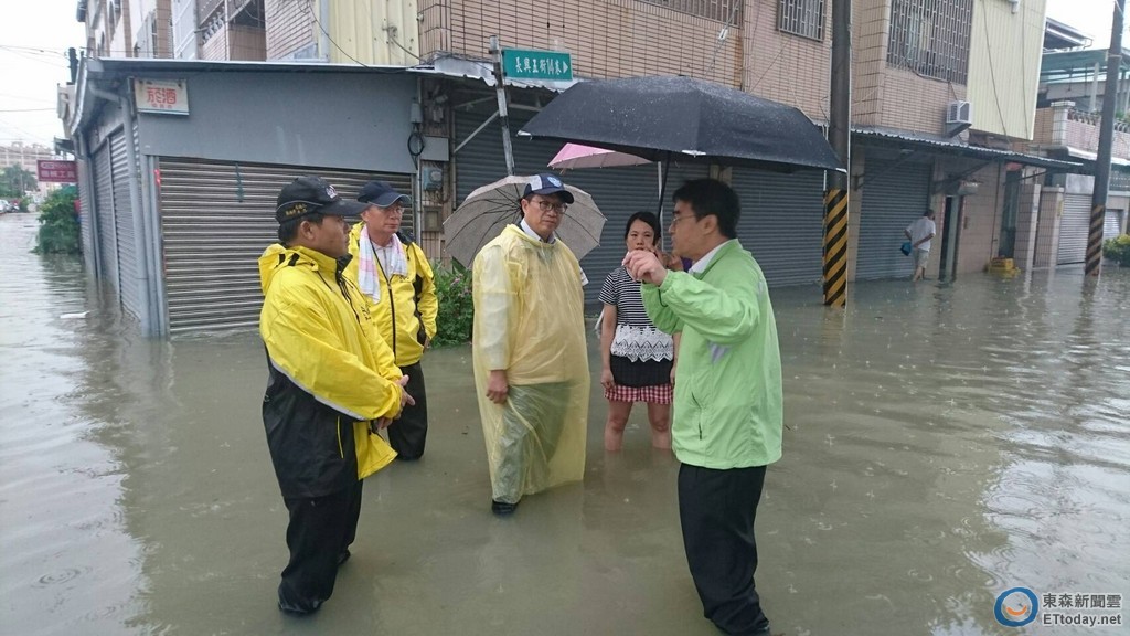 ▲台南市副市長顏純左,親自到淹水地區去視察。(圖/市府提供)