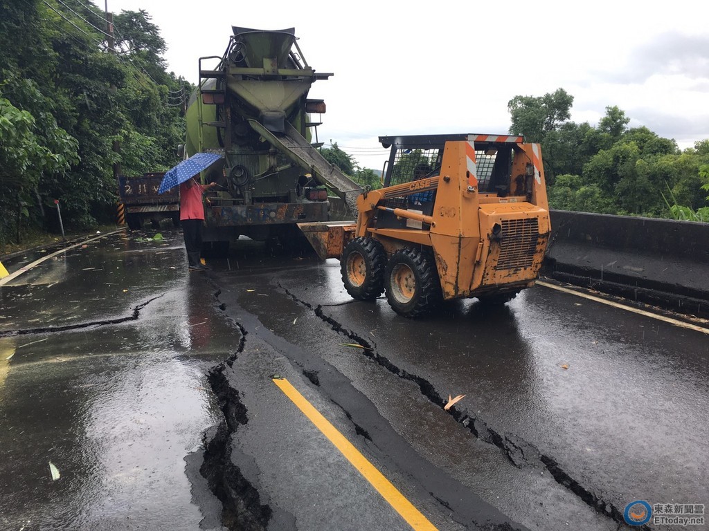在路段搶修狀況部分,因目前亟需快速恢復通車,故採用5000 psi早強混凝土進行搶灌作業,阻斷雨水滲入掏空路基,降低土壤的孔隙水壓,以防止災害擴大。待天氣放晴後將路面修復平整,施作工期約2至3天,再行開放通車,對於後續整體復建規劃,將提報中央災害復建處置。