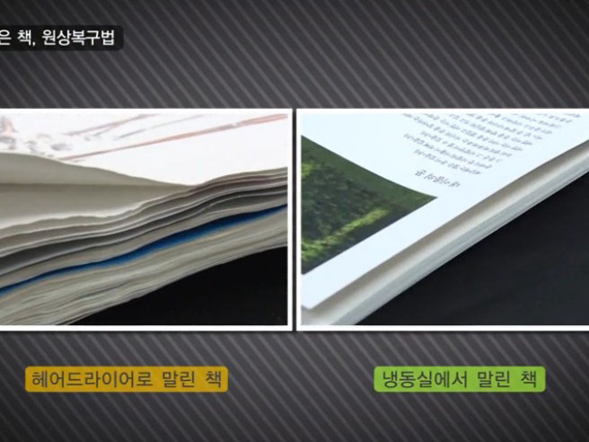 ▲用吹風機吹,很快乾但書會更皺(圖/翻攝於edges.kr)