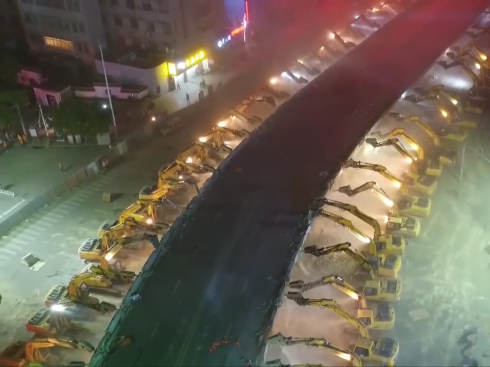 這座立交橋長約503公尺,寬近15公尺,已經使用24年,因為要蓋地鐵,才決定拆除,為此大陸總共出動了116台的怪手,前置作業大概花了3天,不過實際拆掉橋的主體,只花了一個晚上。