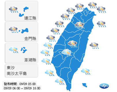 天氣不穩定!西半部及宜蘭地區出現陣雨或雷雨的機率依舊偏高,時間也較長,受到鋒面南下及低壓帶影響,各地容易有局部大雨,北台灣甚至有局部豪雨的機率。氣溫方面,由於時節進入白露、溫差大,氣象局提醒,溫度因雲量增多及下雨,白天最高溫約30到31度,夜晚、清晨則在25度左右。
