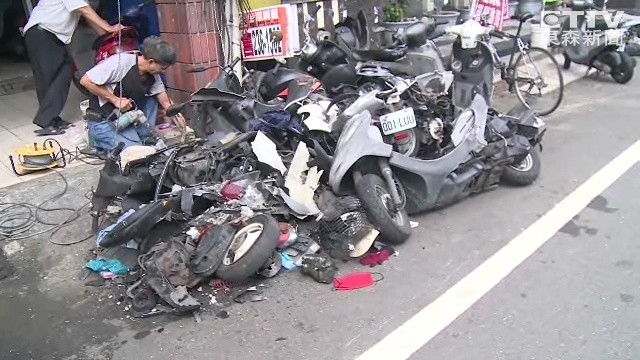 肇事大貨車車頭部份毀損,48歲王姓駕駛沒有受傷;住戶嚇得根本睡不著,一早開始清理殘局,包括店家招牌被撞毀、搖搖欲墜,連騎樓的水泥柱也被撞得外層脫落,其中最慘的是機車店。「(記者:你的機車被撞幾台?)有10多台,(記者:10多台損失多少?)有的是我的車,有的是客人的車,大概20萬跑不掉。」
