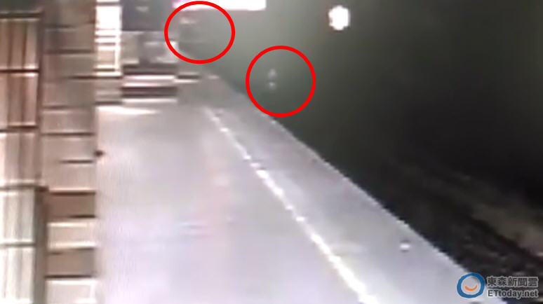 ▲楊姓女學生突然跳下月台,站在軌道中央背對列車。(圖/記者楊佩琪翻攝)