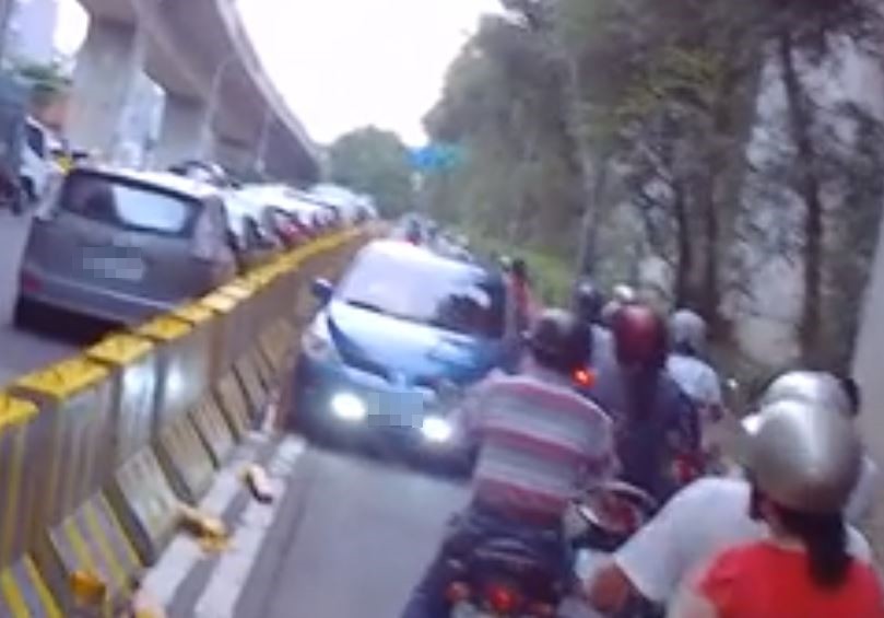 ▲台北一名轎車駕駛誤闖機車道還逆向行駛,導致交通大亂。(圖/翻攝自爆料公社)