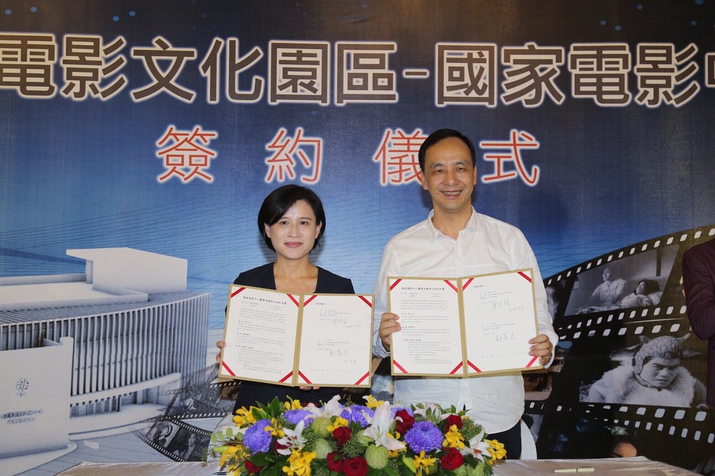 ▲朱立倫及文鄭麗君出席電影中心簽約儀式。(圖/新北市政府提供,下同)