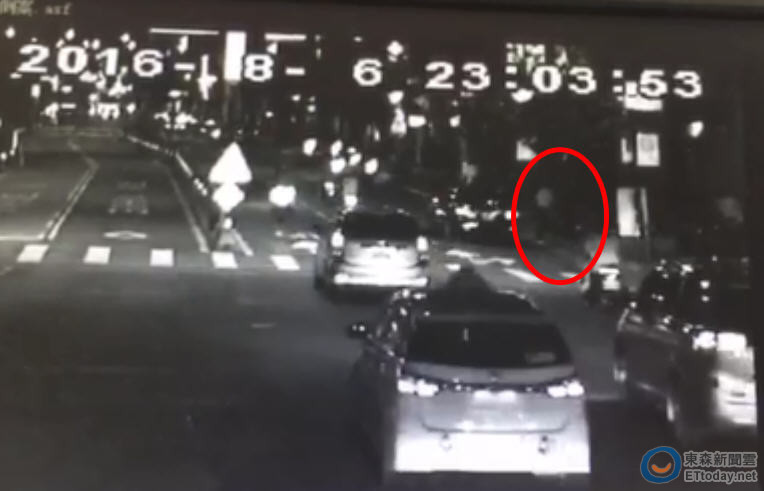 ▲大安分局提供的監視器畫面拍下,何姓男子下了計程車後,在路邊搖搖晃晃走著。(圖/記者楊佩琪翻攝)