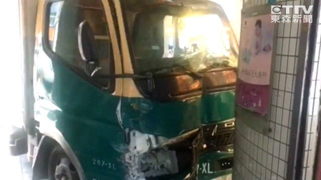 ▲中秋宅配量增!疑精神不濟釀禍,宅急便貨車連撞2車,失控衝進銀樓。(圖/東森新聞,下同)