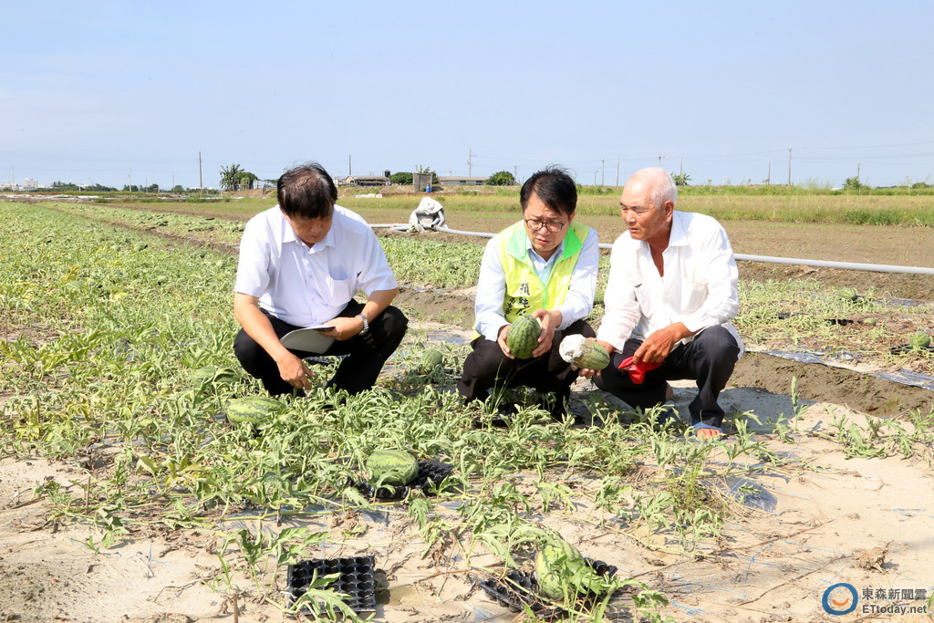 將軍區長陳益敦陪同視察時表示,區內向來鮮少淹水,但本次在連續幾日大雨肆虐之下,已經結果的西瓜受損約80甲、胡麻約100甲,其餘作物如洋香瓜、紅蔥頭、黑豆、蘆筍、甜玉米等作物合計20甲,區內共計有200甲農地受災。顏純左耐心傾聽陳區長解說,並且查看區內一名種植西瓜50年以上農民的農地,了解西瓜與胡麻的損失情形。