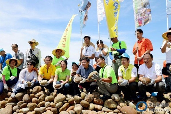 桃園地景藝術節重頭戲『千人築石滬』活動」11日在永安漁港旁沙灘舉行,民眾不畏烈日一人一石合作築成石滬,不僅學習先民生活智慧、海洋教育,也提升環境意識,市長鄭文燦指出,未來市府將採「一年籌劃、一年舉辦」,將地景藝術節經營成桃園代表性藝術品牌。
