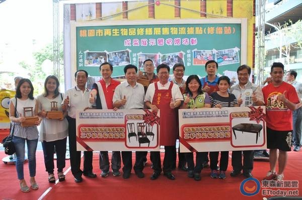 鄭市長說,二手傢具拍賣會是桃園土地公文化節的活動特色,「桃仔園修惜站」再生傢具拍賣非常成功,每年全數拍賣出去,代表市民相當惜物愛物;同時活動現場也有「熊爸的家」二手傢具工作坊,展示妙手回春創造的環保裝置藝術,衍然已成為土地公文化節的亮點。