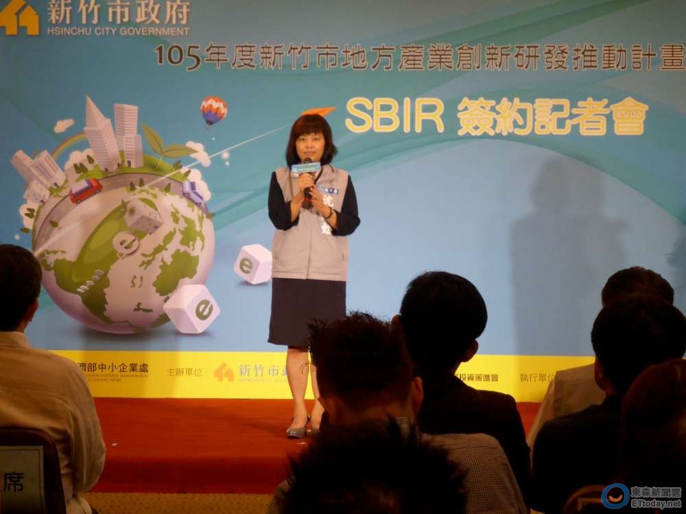 105年度新竹市地方型SBIR於12日舉辦簽約記者會,市長林智堅表示,今年決選出34家廠商予以補助,補助率高達60%,期盼協助廠商提升創新研發能量;副市長沈慧虹也期望今年獲補助的34家廠商能「小兵立大功」,成為新竹市的驕傲。