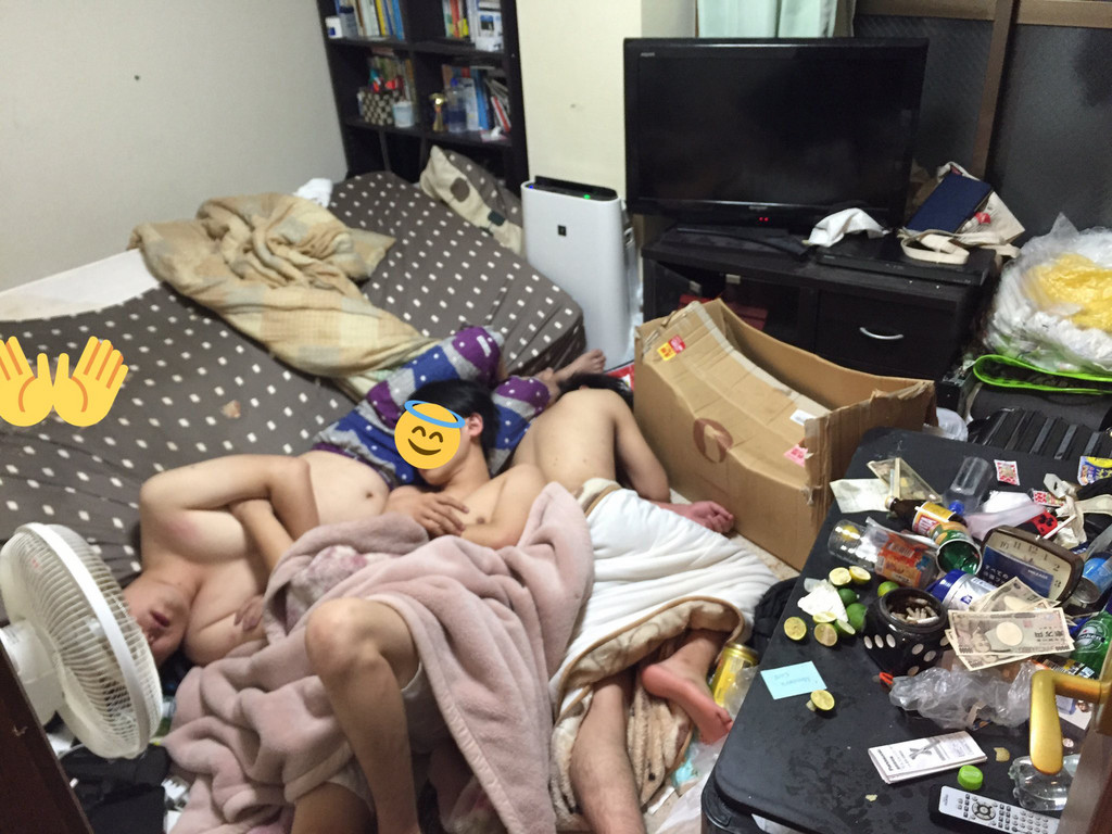 有時候無心營造的畫面,卻更有「笑果」,有日本網友在推特PO上一張照片,只見3名半裸的日本男子,醉倒睡在雜亂的屋子中,但3人姿勢與棉被卻呈現一種怪異的「莊嚴肅穆感」,PO照的網友笑說「覺得相當有藝術感,好像什麼宗教的畫作」。