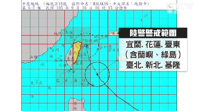 因馬勒卡颱風來襲,依據中央氣象局最新天氣預報資料,並經北北基共識,於16日晚上8時宣布,明(17)日已達停止上班及上課標準。