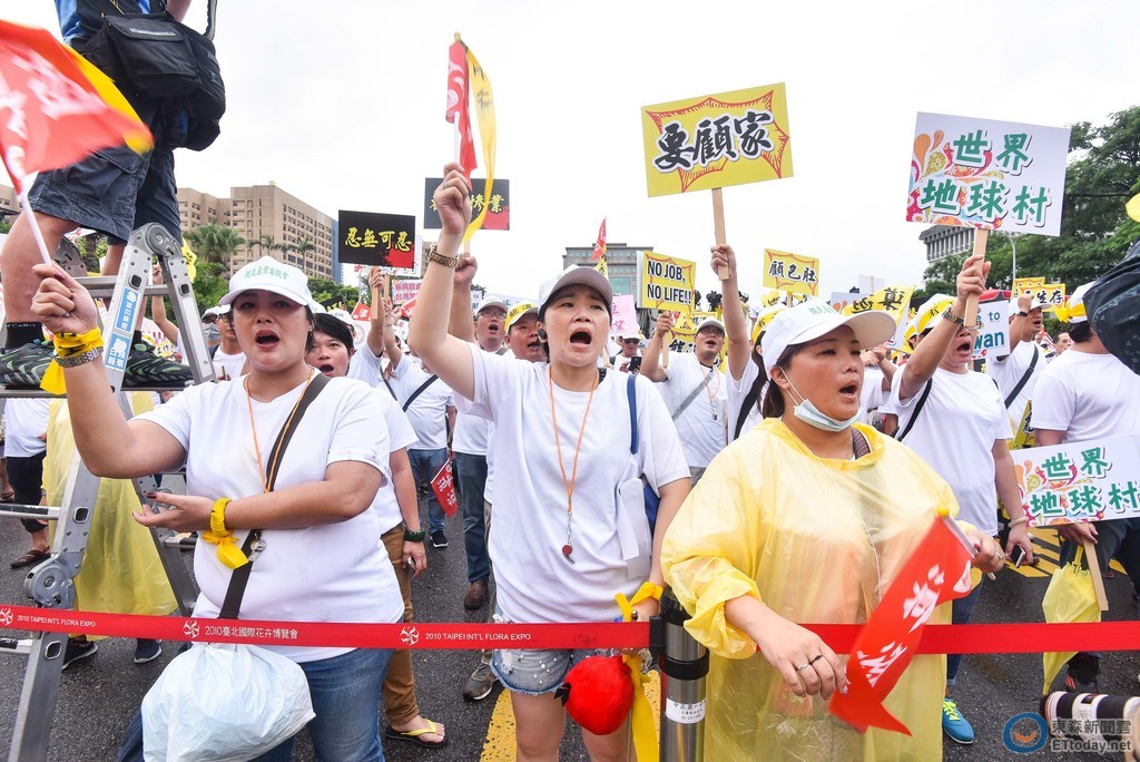 ▲百萬觀光產業於12日上街大遊行。(圖/記者李毓康攝,下同)