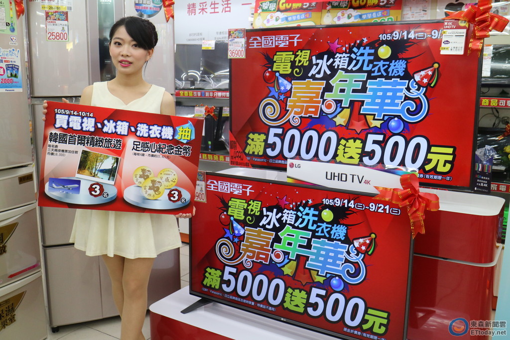 ▲全國電子14日起於全台330家門市舉辦「電視.冰箱.洗衣機嘉年華」。(圖/記者曾婉婷攝)