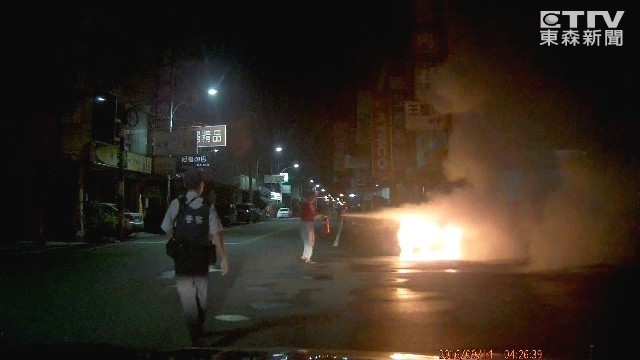 斗六警方獲報趕到現場時,轎車後車箱冒出熊熊火光,民眾拿滅火器卻滅不了火。此時警員葉金龍見車門反鎖,車內駕駛已陷入昏迷,連忙拿出擊破器打破左後車窗,終於將駕駛拉出車外,經初步急救後,將他送上救護車。