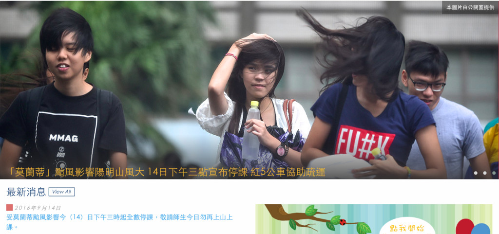▲文化大學風太大宣佈下午三點起停課。(圖/翻攝自文大網站)