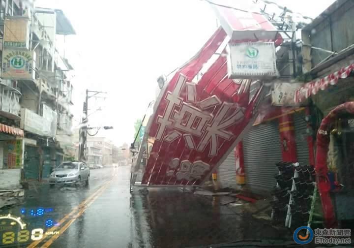 ▲莫蘭蒂肆虐,高雄地區災情慘重,路上隨處可見招牌掉落。(圖/網友提供)