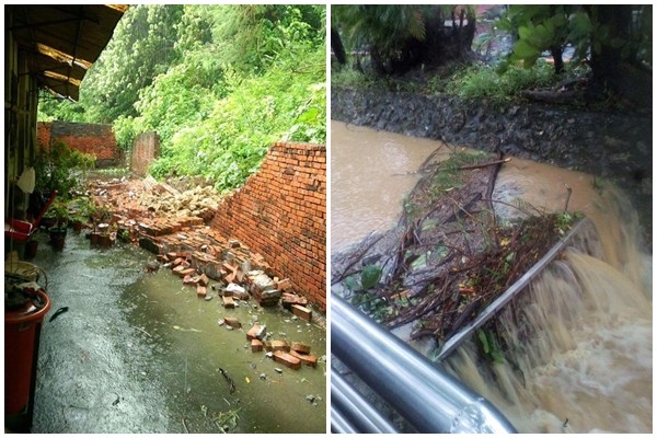 強颱莫蘭蒂侵襲南台灣,各地災情慘重,高雄市鼓山區自強里一名網友表示,9月初連續大雨造成土石鬆動,落石滾落壓倒位於鼓山三路185巷老家的圍牆,反應後得到議員全力協助。但14日下午風強雨大,後山的樹被吹倒,原PO擔心深夜如果發生土石流,他不知道該怎麼帶年邁的父母逃離。