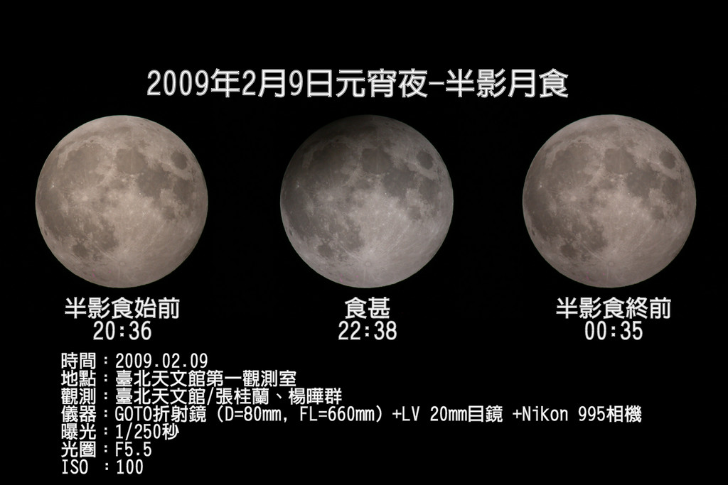 ▲ 發生於2009年2月9日元宵夜的半影月食。(圖/引用自臺北天文館之網路天文館網站)