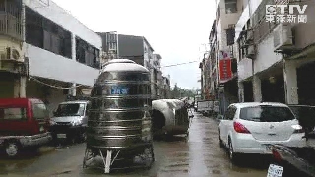 ▲水塔被吹到路中。