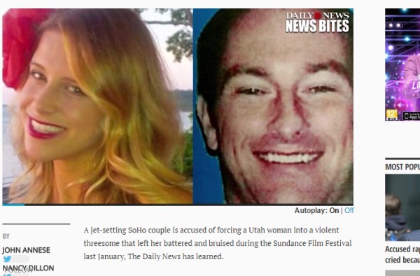 有錢人的思維真的常常讓人猜不透!美國紐約一對情侶,家境都十分富有,但他們被指控涉嫌在去年1月,在猶他州參加日舞影展(Sundance Film Festival)後,強迫一名當地女子和他們大玩3P性愛,過程中還玩起SM性虐遊戲,對方因此受傷住院憤而報警提告。