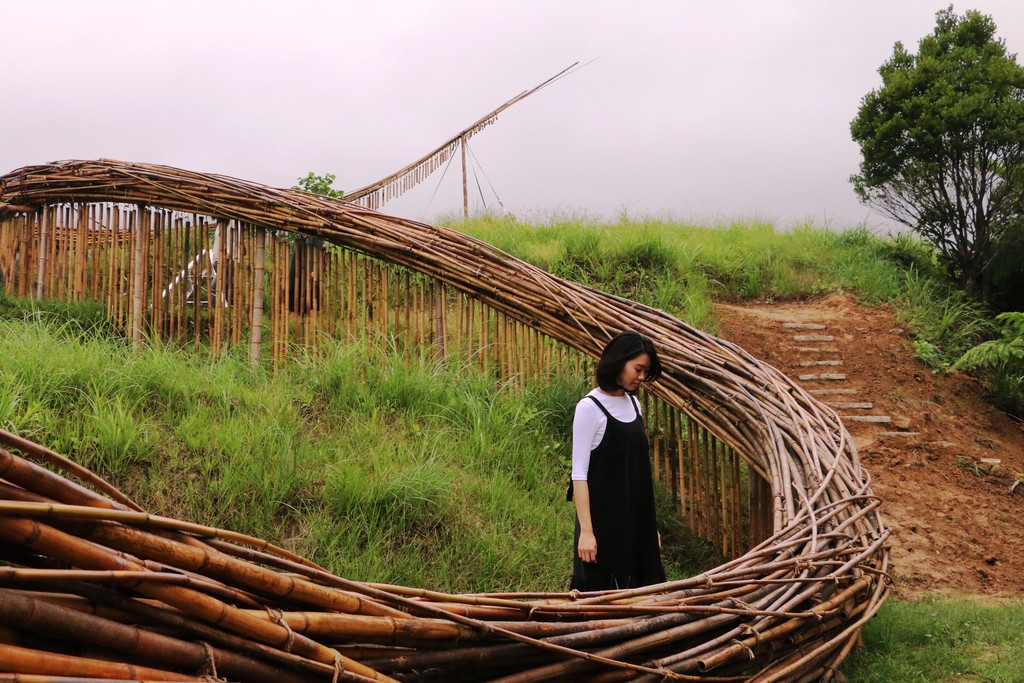 另一件位於三芝橫山梯田之間「秋天的傳說」,是由國內知名的地景藝術家游文富一手打造,以自然媒材創造地景裝置的他,在充滿綠意的梯田景觀,以竹子的色彩漸層烘托秋收的喜悅,在季節時序變換下,營造出特殊的層次美感。