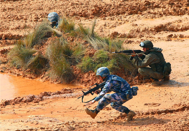 為期8天的中俄「海上聯合-2016」軍事演習,於14日在湛江某訓練場進行對海島進攻戰鬥戰術綜合演練。據了解,這是兩國海軍陸戰隊首次在戰術層面進行混編,目的是能先增進雙方信任感,為日後演習最備受矚目的立體奪控島礁項目打下基礎。