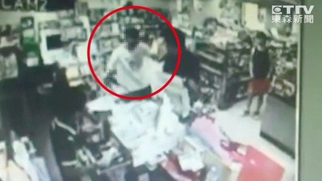 ▲林姓男子持刀闖進超商內,大喊「我要搶劫!趕快報警!」(圖/東森新聞)