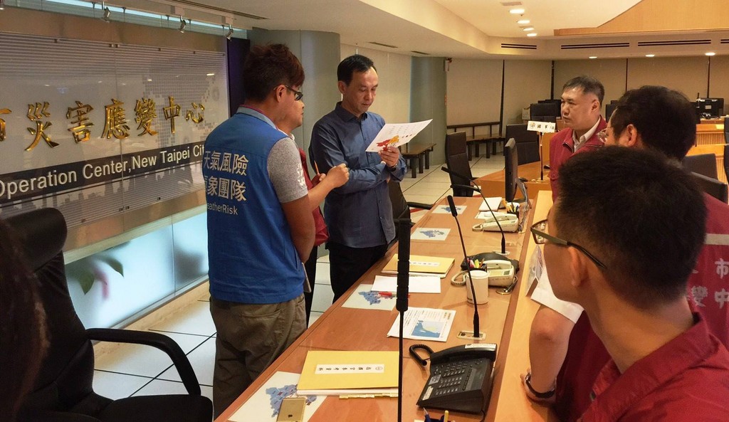 ▲馬勒卡逼近,新北災變中心一級開設。(圖/朱立倫臉書)