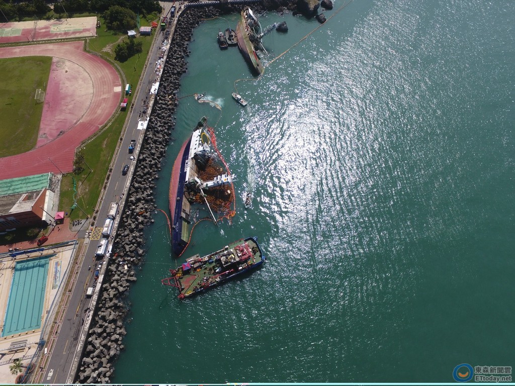 港務公司表示,繼昨天完成第一階段油污清理工作後,今天將再加派清潔人力進行第二階段環境復原工作,工作重點將著重於岸際、消波塊、礁石間零星油漬之清除,清除工作將以分組分區方式進行,沿岸際佈設4組,每組10人,以吸油棉加強消波塊間之油漬清除,並輔以水槍清洗礁石油漬,作業前將先做好預防二次污染治措施,包含作業區域先行鋪設不透水布及吸油棉防護,水域吸油棉撈起時即以塑膠袋包裝,並設置除油物品暫置區等措施,以避免油污清理工作造成二次水域污染。