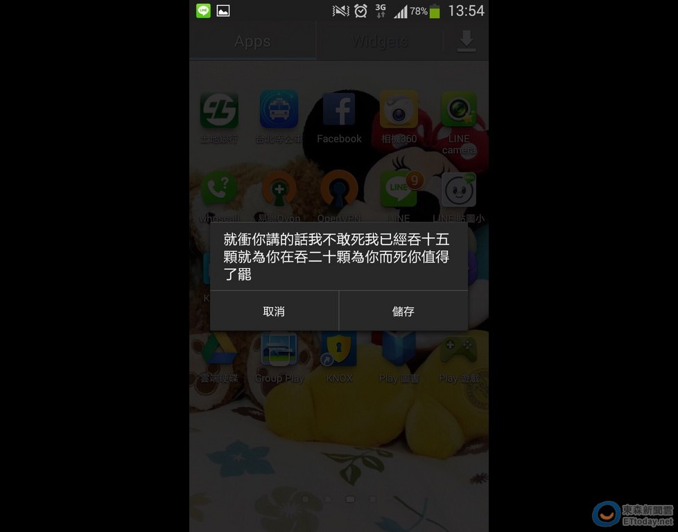究竟是靈異事件還是手機出問題?網友il2985在PTT「marvel板」表示,2年前使用Samsung Note2時,跳出1封詭異的系統訊息,內容提及「吞二十顆」、「為你而死」,他PO出截圖畫面,令鄉民們看了背脊發涼。三星台北三創門市則認為,這情況可能是APP軟體造成。