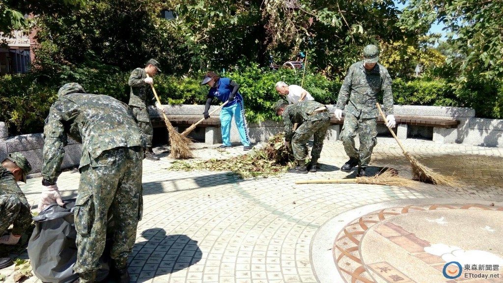 ▲國軍弟兄在中秋假期協助各校整理校園,令校方十分感謝。(圖/市府提供)