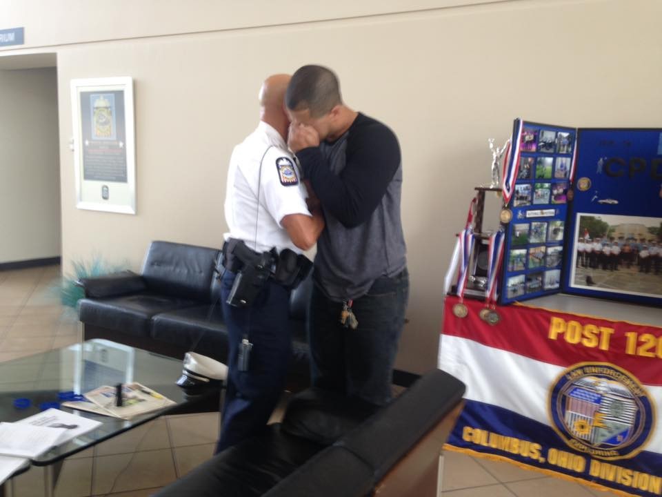 ▲美男溺水獲救!20年後赴警局給救命恩人一個驚喜。(圖/取自Columbus Division of Police臉書,下同)