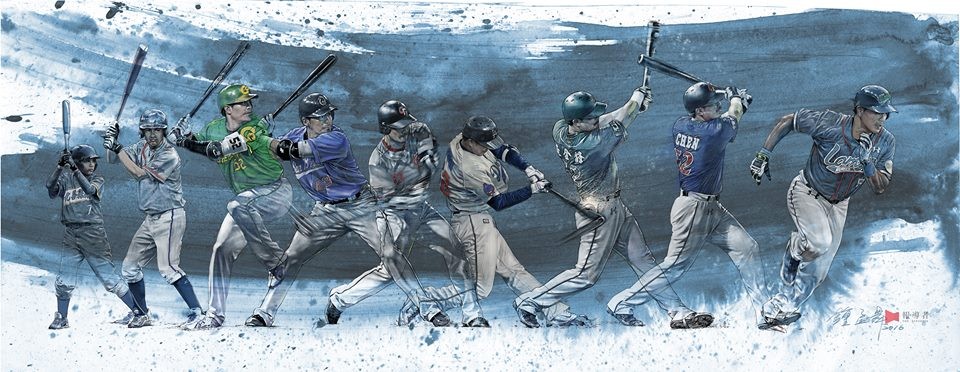 ▲知名漫畫家鍾孟舜為了紀念鋒砲引退,創作了陳金鋒從小到大所有待過球隊的揮棒英姿,讓網友大呼:我又感動流淚了一次。(圖/翻攝自「報導者 The Reporter」臉書)