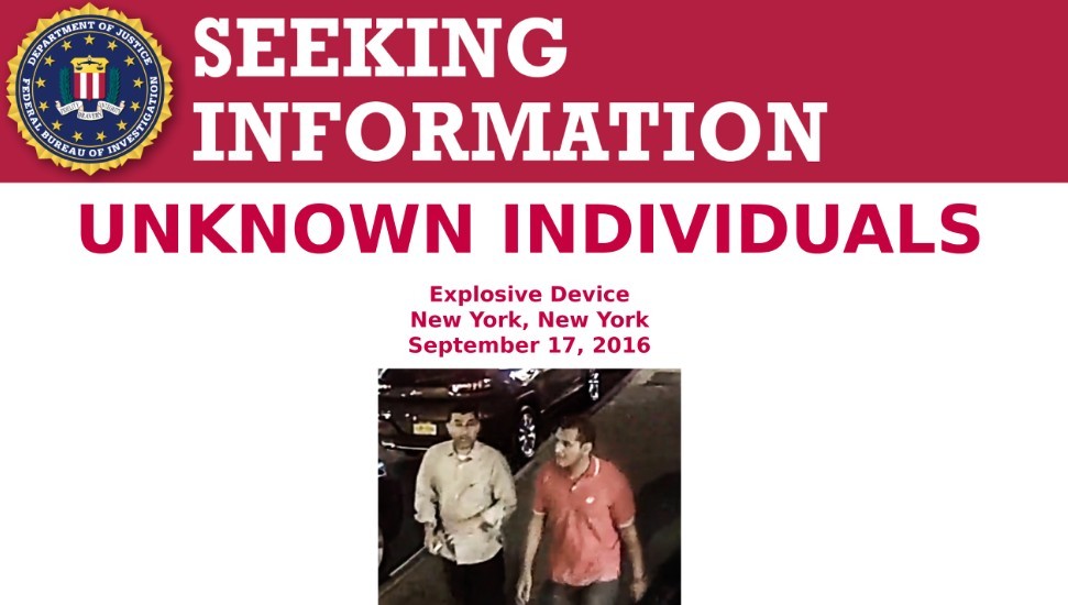 美國紐約曼哈頓17日晚間發生爆炸攻擊,後來又找到另外一枚壓力鍋未爆彈,發現竟然是兩名小偷行竊時破除了炸彈裝置,才沒有爆裂造成更多傷亡,如今FBI公布照片,希望能找到這兩名意外阻止恐攻的「護國小偷」。