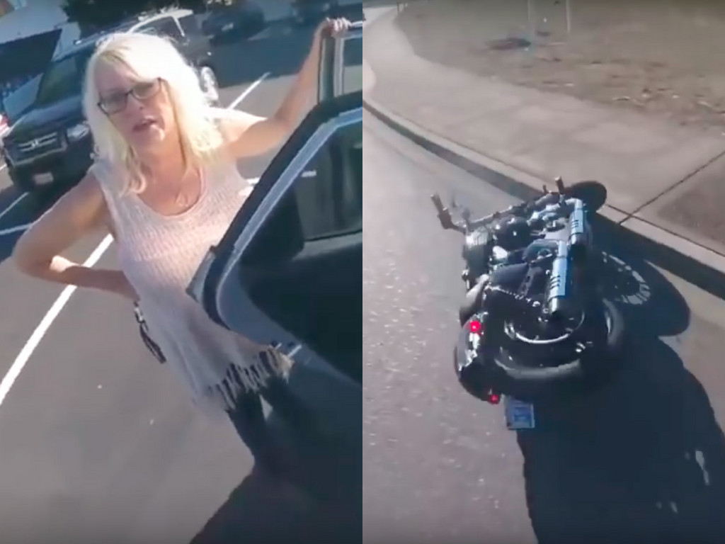 位於華盛頓肯特市的一名男子,在15日時上傳影片,他從媽媽的車子下車,著裝準備騎摩托車,媽媽在旁邊說「愛你唷,小心安全,小心路上(不會開車)的三寶」。接著兒子就開始悠哉地騎車上路,但就在交通號誌前放慢速度時,卻遭到後方來車撞飛,雖然他及時從車上跳開,但摩托車就這樣應聲倒地。