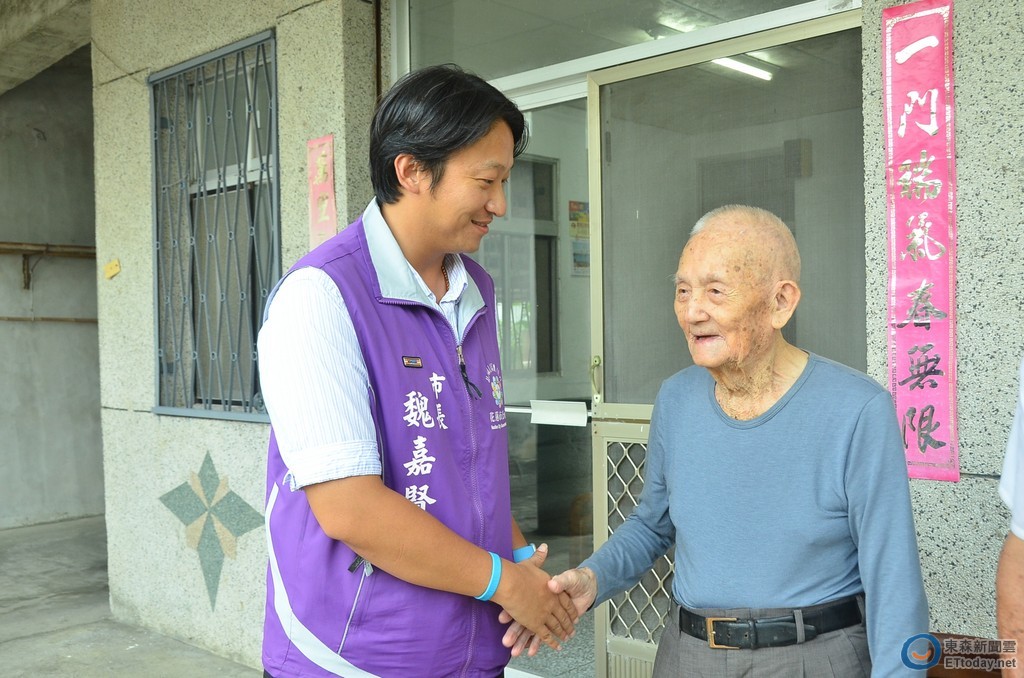 ▲ 花蓮市長魏嘉賢前往百歲長者陳本三爺爺家中致贈重陽禮金。(圖/花蓮市公所提供)