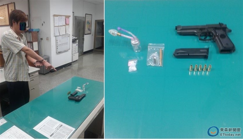 屏東崁頂分駐所長陳彥泳獲報有人非法持有槍械,日前親率4名警員前往緝捕,果真在中正路當場查獲蕭姓男子非法持有手槍1支(子彈5顆)、甲基安非他命1包及吸食器一組,立即逮捕並帶返所偵辦,隨後還發現他是因遭同事言語奚落,因此上網買槍,還嗆同事「以後我說一就是一」。