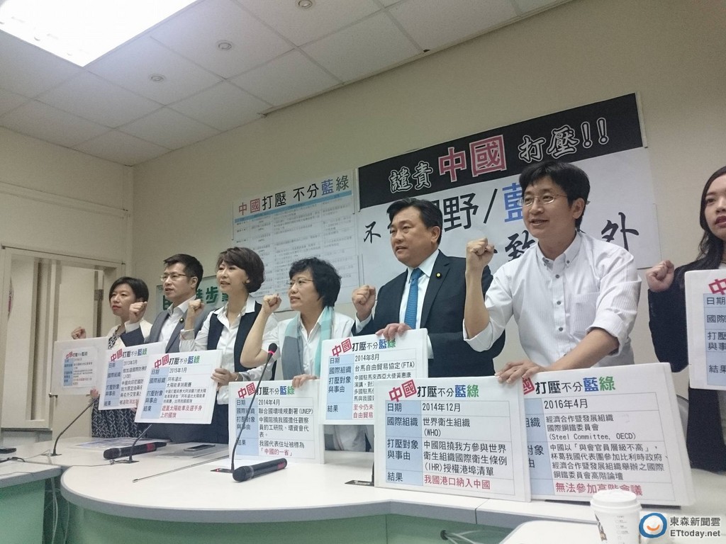 民進黨立委王定宇也說,台灣只要想維護主權就會面對困難,今年在OECD的國際鋼鐵委員會、FAO聯合國國際糧農組織都發生台灣官員被中國官員趕出會議現場的情況,「除非我們放棄國格、主權確實存在的事實,否則打壓不分藍綠!」