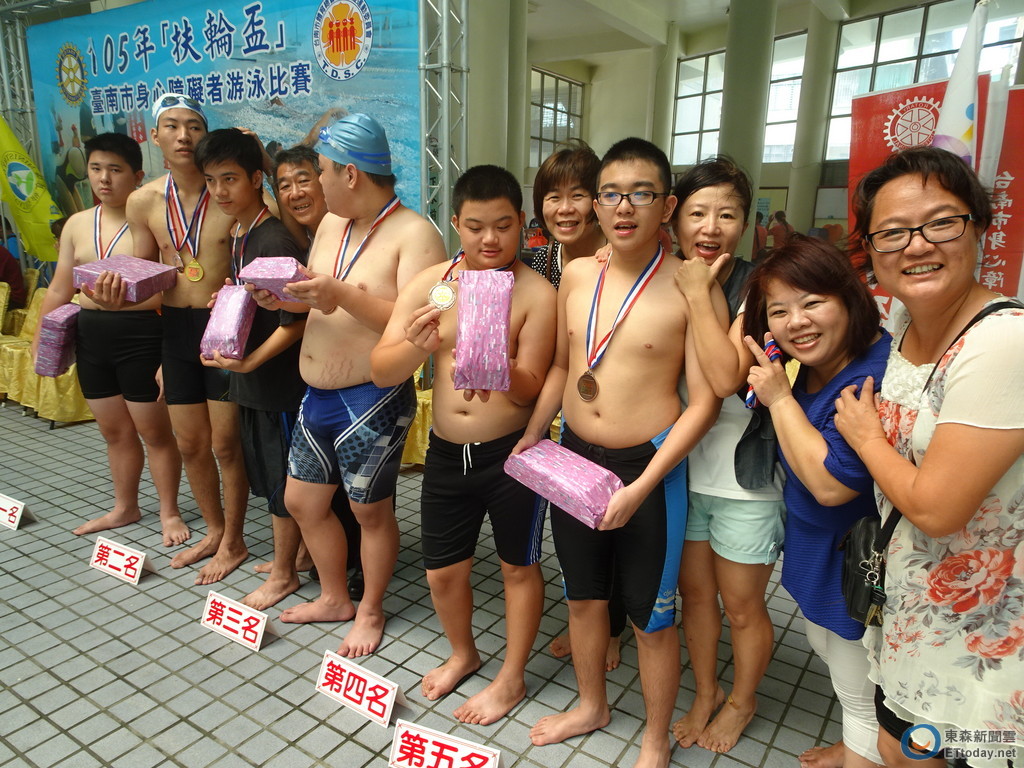 台南市永福國小自閉症巡迴班輔導的星星兒,在25日的台南市扶輪盃身障者游泳比賽中大放異彩,全部的孩子都拿到了分組前五名,還有多位星星兒跨組參加不同泳式不同距離的比賽 ,真的很不容易!