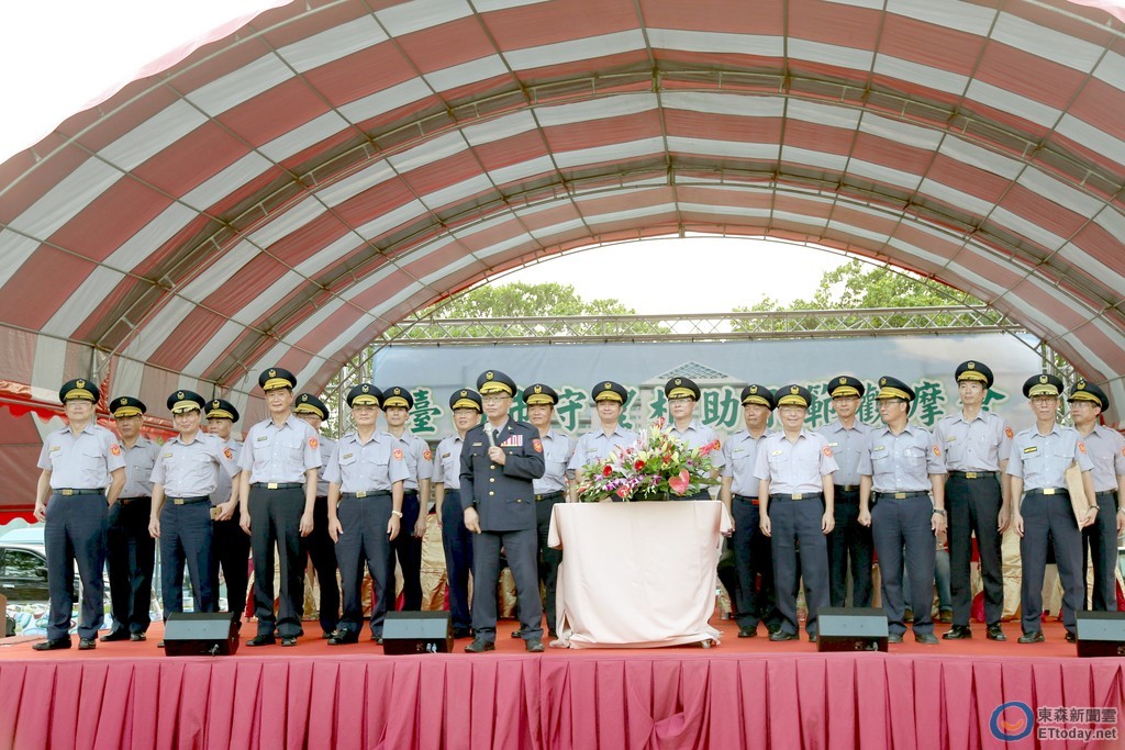 ▲台南市警局黃宗仁,率副局長、全市各分局分局長,向在場全市所有守望相助隊致謝。(圖/記者林悅攝)