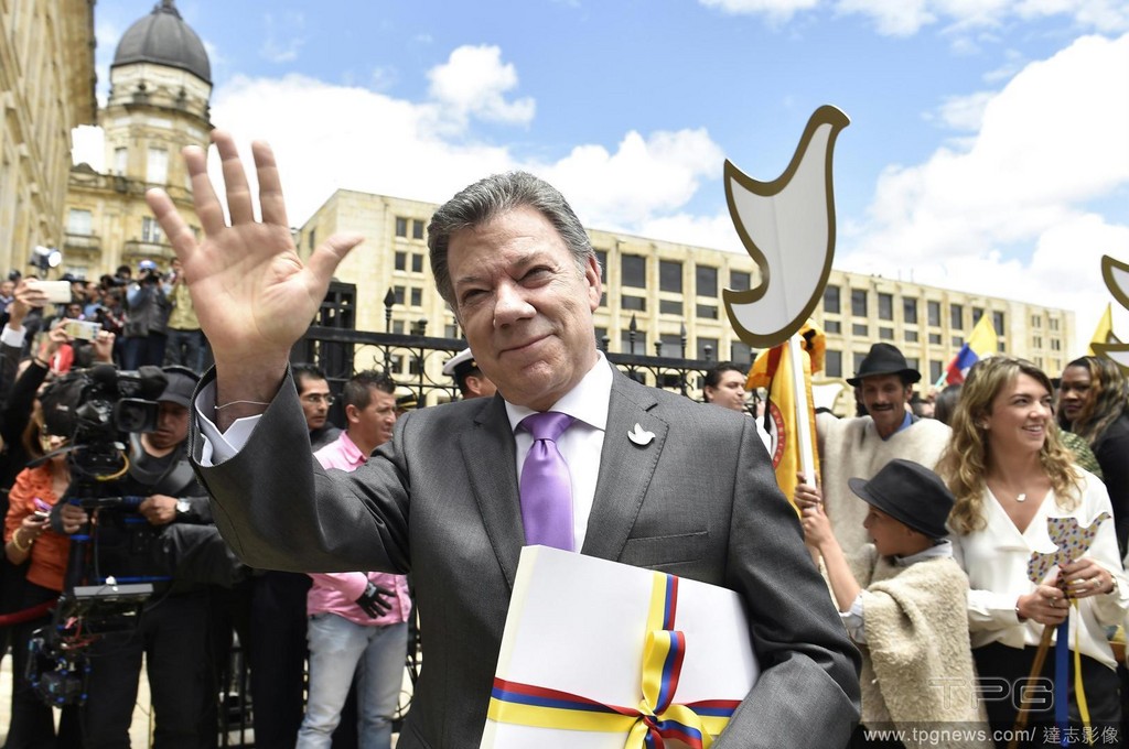 ▲哥倫比亞總統桑托斯(Juan Manuel Santos)於波哥大把和平協議遞交國會,10月2日由全民表決。(圖/達志影像)