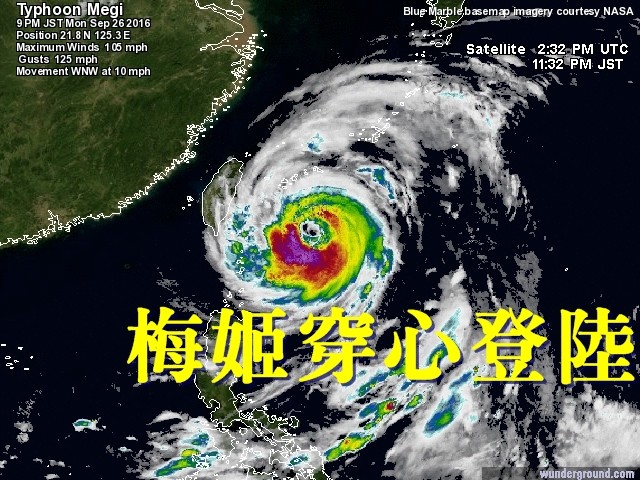 氣象局表示,中度颱風梅姬暴風圈已進入巴士海峽及台灣東南部海面,並繼續朝東半部陸地接近,對台灣陸地將構成威脅。台灣各地區(含蘭嶼、綠島)應嚴加戒備,並防強風豪雨。