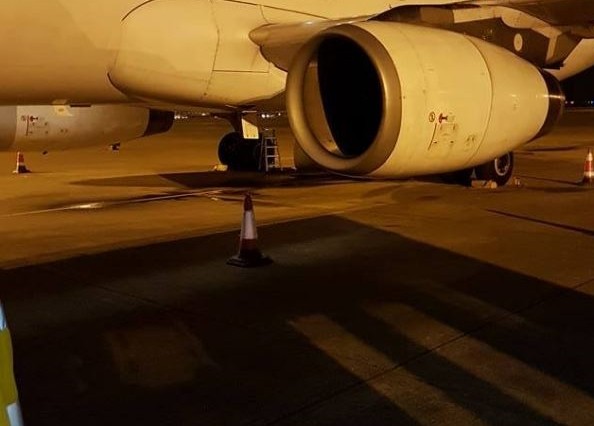 梅姬颱風將襲,一架從澳門返台的某航空班機出狀況,150人原機返回澳門。一位網友在「爆料公社」po文說,飛到一半在空中突然不斷有怪聲、油味,飛機襟翼油管爆,趕回澳門降落,出來看到地上都是油,嚇死人!並強調「真的沒得選,家人訂的時候我已經抗議過了!」