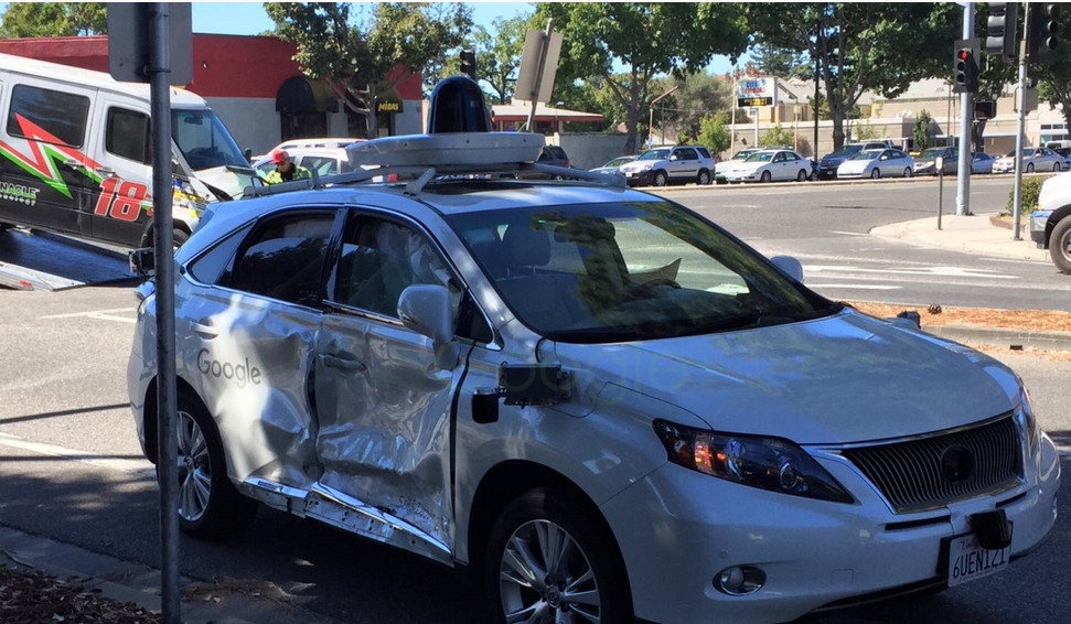 綜合外媒報導,一輛由Lexus RX 450h改裝的Google自動駕駛試驗車,在加州山景市(Mountain View)一處十字路口,被另一輛商用廂型車攔腰撞上。自駕車車身一側被撞凹、車窗破裂,車內的安全氣囊也爆開,不過這起車禍沒有造成任何人員傷亡。