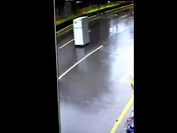 因為今日全台皆被梅姬颱風半徑壟罩,風速強大讓不少物品都被吹至馬路上,不過這台冰箱彷彿星際大戰裡面的「BB-8」,一晃眼的時間就從畫面溜過去,引起批踢踢鄉民回應「冰箱:肥宅不要碰我」、「冰箱:我乘風而來,隨風而去~」、「不用開罰單嗎?」、「雖然不應該,但還是笑了」,還有人說出冰箱其實是「肚子餓」,不過照常理說冰箱應該不會被家中吹至馬路上,推測應該是擺放在中古家電行外面的冰箱沒鎖好而被強風吹著跑。