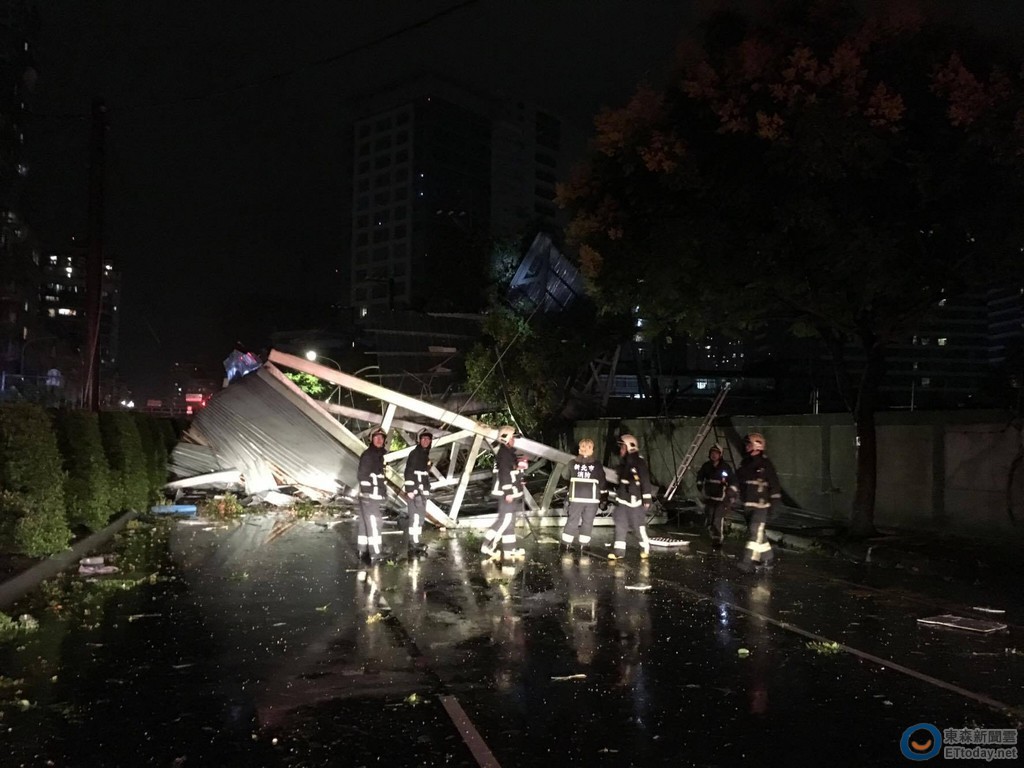 梅姬颱風肆虐,第六軍團27日晚間表示,所屬關指部新店東營區受瞬間強風吹襲,造成大門右側女性寢室屋頂遭掀落,共有郭姓一兵等10員女性士官兵分受腿部挫、擦傷及頭部外傷,即送新店慈濟醫院急診室診療;另有1名潘姓衛兵因倒塌粉塵造成眼睛不適,送三總觀察,人員均無生命危險。
